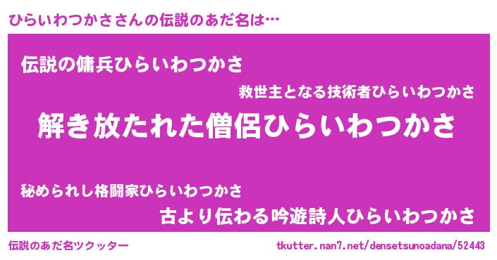 | 意味不明あだ名 | 『自称ひらいわつかさ』 |