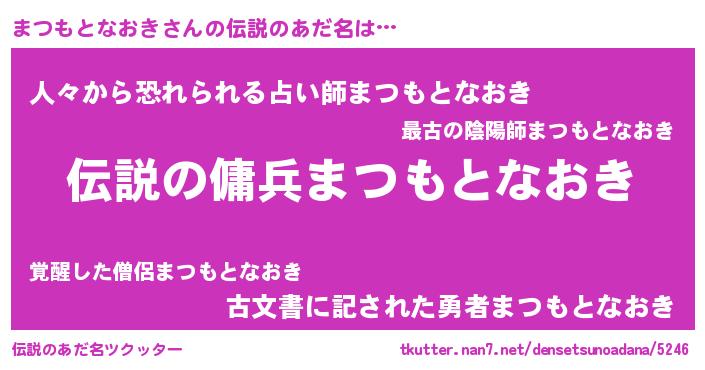 | 男性向けラノベタイトル風あだ名 | 『マツモトナオキスレイヤー』 |