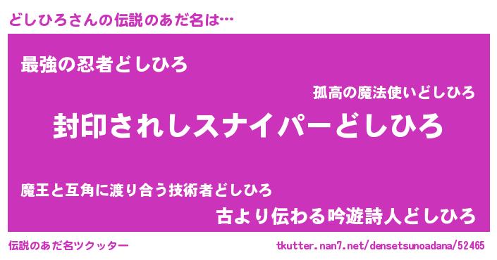 | 意味不明あだ名 | 『ペロリンどしひろ』『永久保存どしひろ』 |