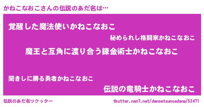 | 意味不明あだ名 | 『自称かねこなおこ』 |