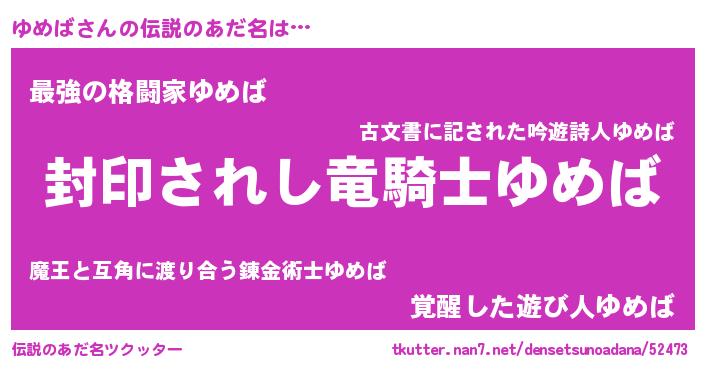 | ヒーロー風カッコイイあだ名 | 『スーパーユメバ』『ウルトラゆめばマン』 |