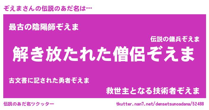 | 男性向けラノベタイトル風あだ名 | 『ぞえまの嫁は女の子じゃないと思った?』 |