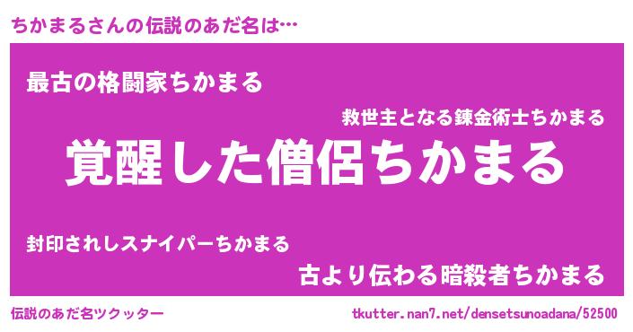 | 男性向けラノベタイトル風あだ名 | 『ちかまるの嫁は女の子じゃないと思った?』 |