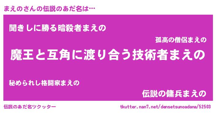 | 意味不明あだ名 | 『住所不定無職まえの(8歳)』 |