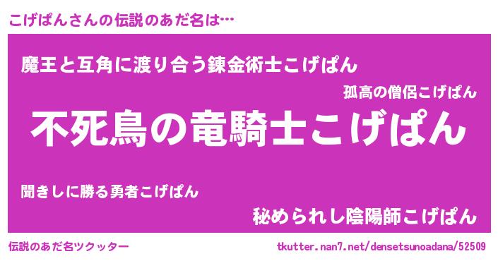 | 意味不明あだ名 | 『ペロリンこげぱん』『自称こげぱん』 |