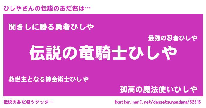 | ヒーロー風カッコイイあだ名 | 『スーパーヒシヤ』『ネオヒシヤ』 |