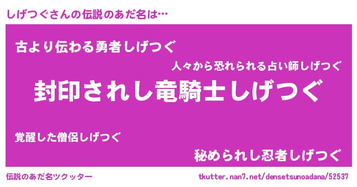 | ヘコむあだ名 | 『しげふぇ~』『しげつぐ(遠い目)』 |