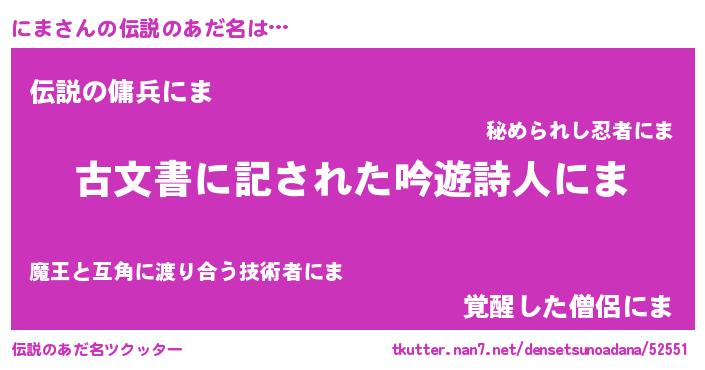 | 意味不明あだ名 | 『永久保存にま』『住所不定無職にま(98歳)』 |