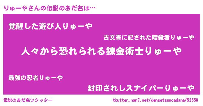 | 男性向けラノベタイトル風あだ名 | 『リューヤスレイヤー』『緋弾のリューヤ』 |