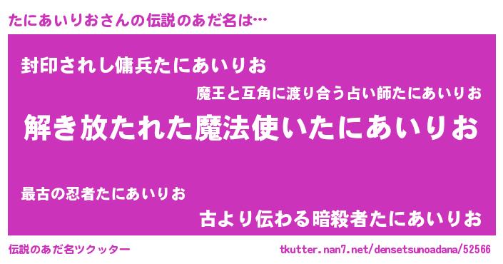 | ヒーロー風カッコイイあだ名 | 『銀牙騎士タニ』『スーパータニアイリオ』 |