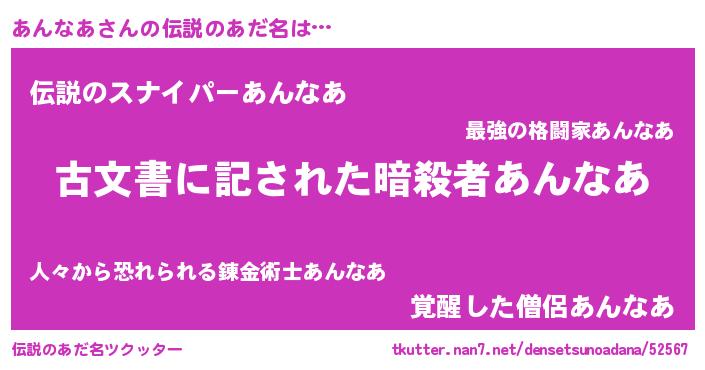 | 意味不明あだ名 | 『住所不定無職あんなあ(65歳)』 |