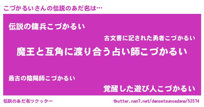 | ヒーロー風カッコイイあだ名 | 『愛の使者こづかるい』『炎刃騎士コヅ』 |