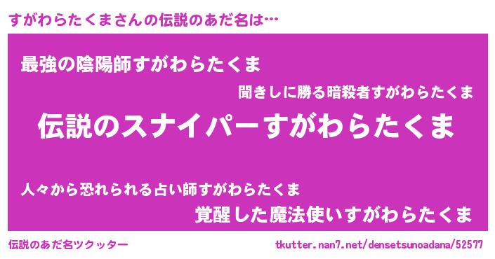 | ヒーロー風カッコイイあだ名 | 『スーパースガワラタクマ』 |