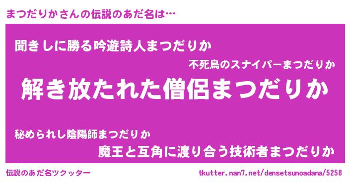 | 意味不明あだ名 | 『とにかく怪しいまつだりか』 |