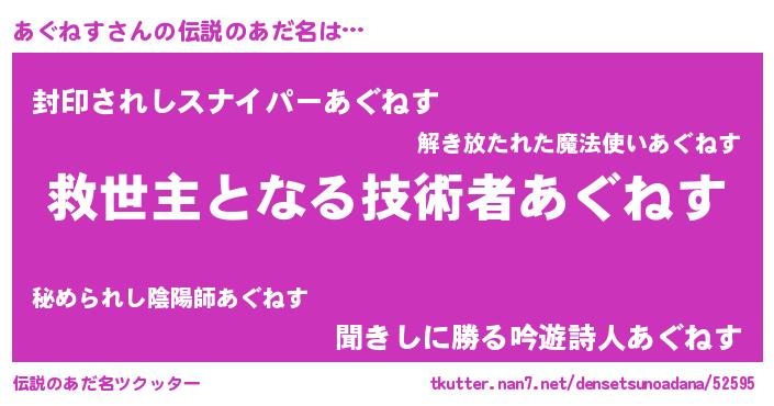 | ヘコむあだ名 | 『あぐにー』『あぐねす(苦笑)』 |