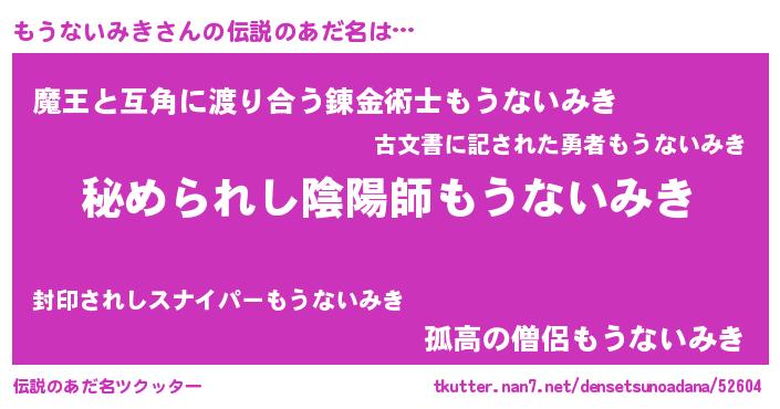 | 男性向けラノベタイトル風あだ名 | 『はたらくもうないみきさま!』 |