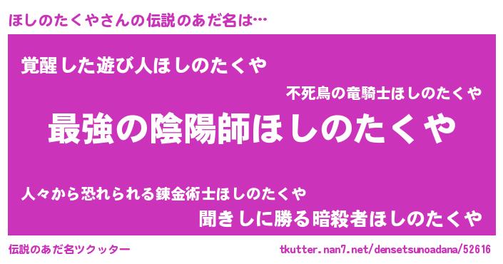 | ファンタジー風あだ名 | 『エターナルホシノタクヤー』 |