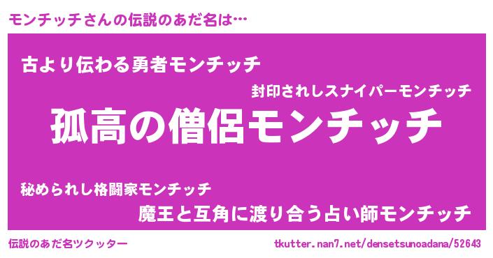 | ヒーロー風カッコイイあだ名 | 『暗黒騎士モン』『仮面モンダー』 |