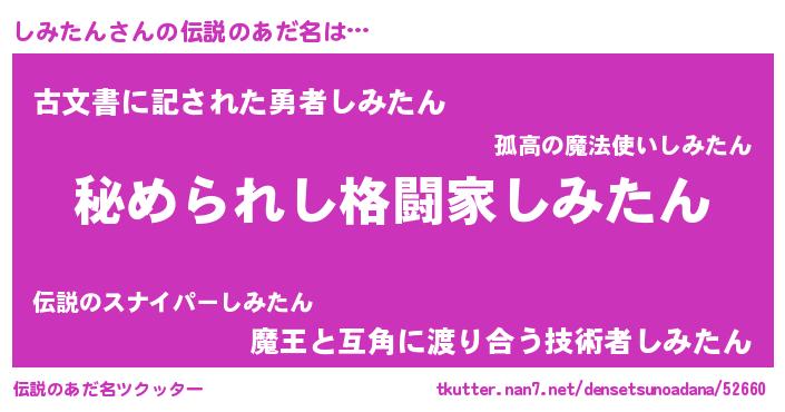 | 意味不明あだ名 | 『しみたんフォーエバー』 |