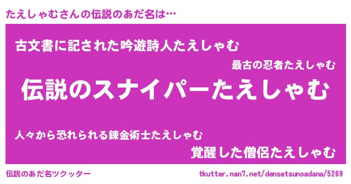 | 肩書あだ名 | 『たえしゃむ総統』『たえしゃむ中将』 |