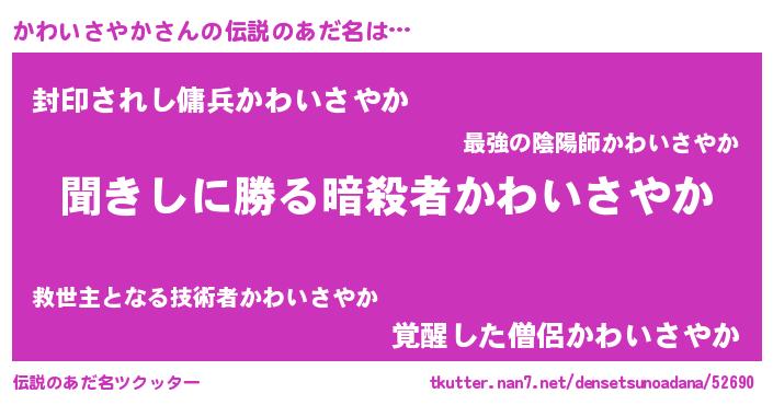 | ヒーロー風カッコイイあだ名 | 『ネオカワイサヤカ』『暗黒騎士カワ』 |