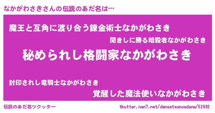| ファンタジー風あだ名 | 『エターナルナカガワサキー』 |