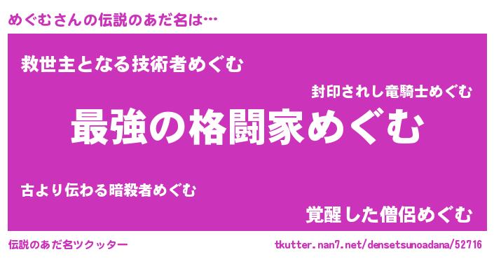 | 意味不明あだ名 | 『住所不定無職めぐむ(8歳)』『自称めぐむ』 |