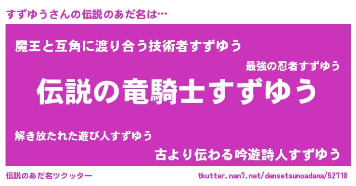 | 意味不明あだ名 | 『自称すずゆう』『ペロリンすずゆう』 |