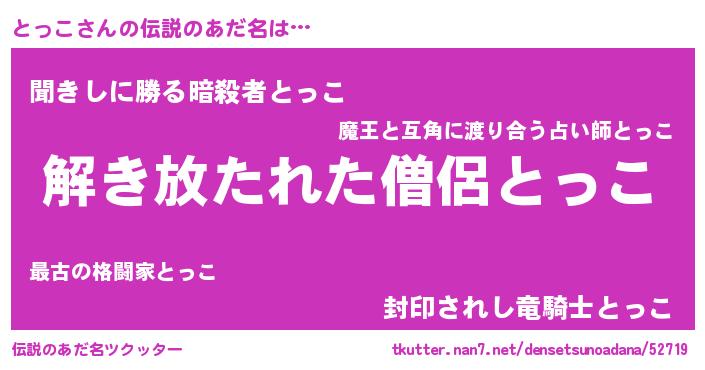 | ポケモン風あだ名 | 『ヒトッコ』『ゼニトッ』『トッゴンZ』 |