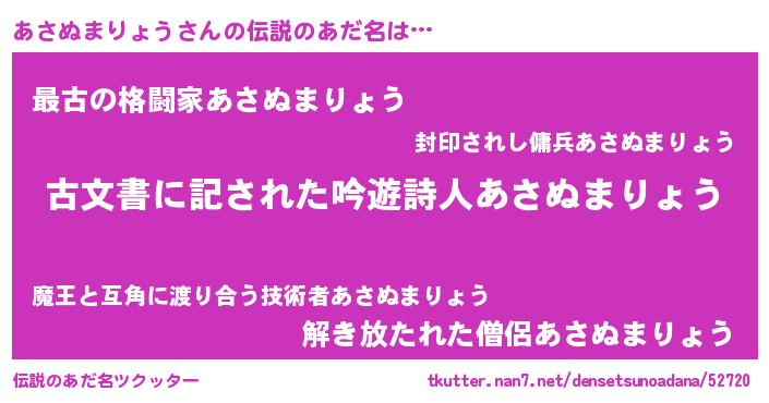 | ヒーロー風カッコイイあだ名 | 『ネオアサヌマリョウ』『仮面アサダー』 |