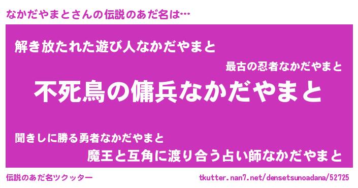 | 男性向けラノベタイトル風あだ名 | 『ナカダヤマトアートオンライン』 |