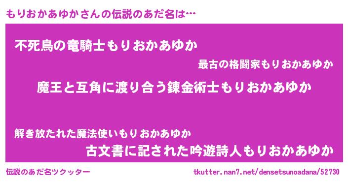 | 女子向けラノベタイトル風あだ名 | 『もりおかあゆか恋絵巻』 |