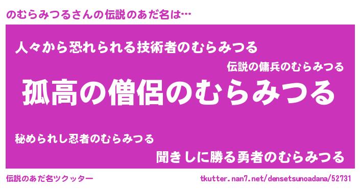 | 男性向けラノベタイトル風あだ名 | 『ダンジョンにのむらみつるを求めるのは間違っているだろうか』 |