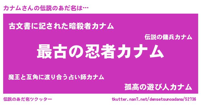 | ファンタジー風あだ名 | 『カークカナラー』『エターナルカナムー』 |