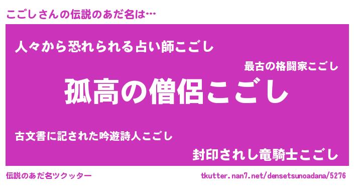 | ヒーロー風カッコイイあだ名 | 『魔戒騎士コゴ』『友情の使者こごし』 |