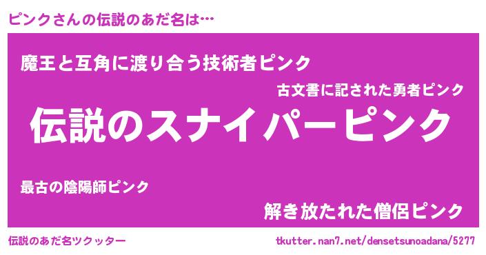 | ヒーロー風カッコイイあだ名 | 『超時空戦士ピンク』『スーパーピンク』 |