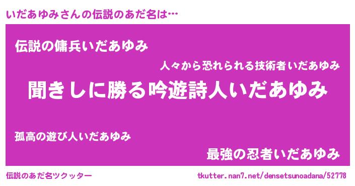 | 意味不明あだ名 | 『永久保存いだあゆみ』 |