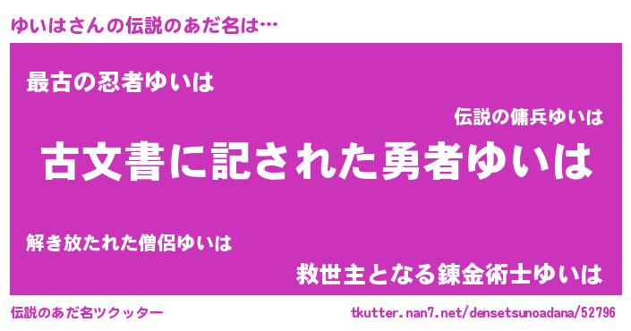 | 意味不明あだ名 | 『永久保存ゆいは』『ゆいはフォーエバー』 |