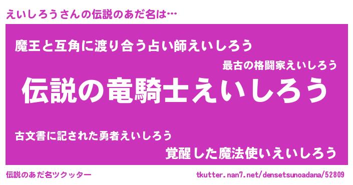 | 男性向けラノベタイトル風あだ名 | 『緋弾のエイシロウ』『えいしろうの憂鬱』 |