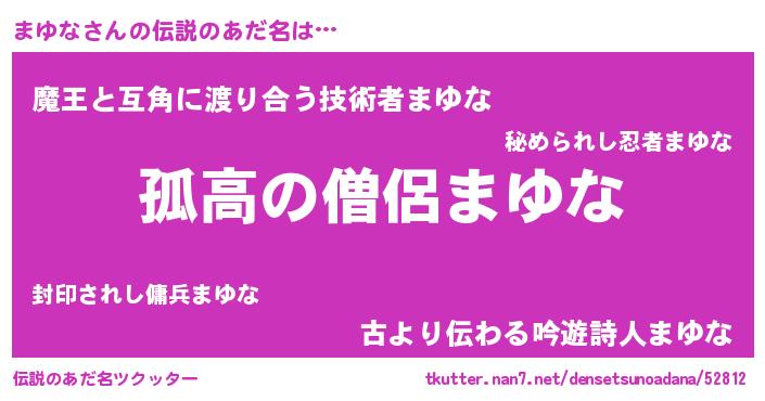 | ヒーロー風カッコイイあだ名 | 『暗黒騎士マユ』『仮面マユダー』 |