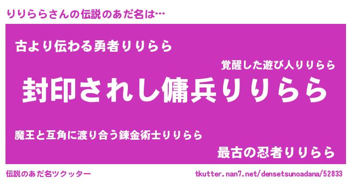 | 胡散臭い通販商品みたいなあだ名 | 『億万長者になれる水晶球…その名も「りりらら」』 |