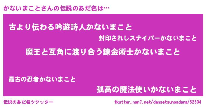 | 女子向けラノベタイトル風あだ名 | 『かないまこと恋絵巻』 |