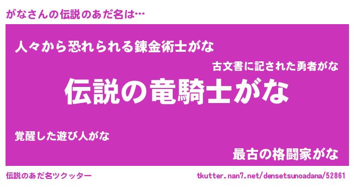 | ヒーロー風カッコイイあだ名 | 『スーパーガナ』『慈愛の使者がな』 |