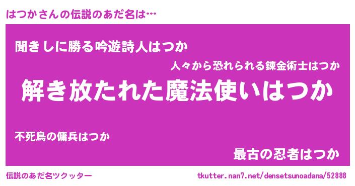 | ヒーロー風カッコイイあだ名 | 『仮面ハツダー』『超時空戦士ハツカ』 |
