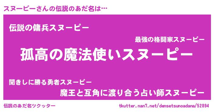 | 胡散臭い通販商品みたいなあだ名 | 『信頼と実績のサプリメント…その名も「スヌーピー」』 |