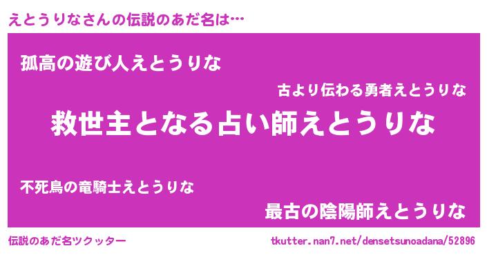 | ヒーロー風カッコイイあだ名 | 『天空の使者えとうりな』『銀牙騎士エト』 |