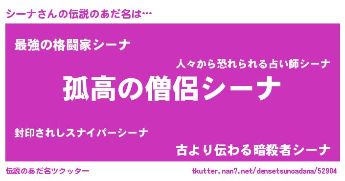 | ヒーロー風カッコイイあだ名 | 『仮面シーダー』『究極戦士シーナ』 |