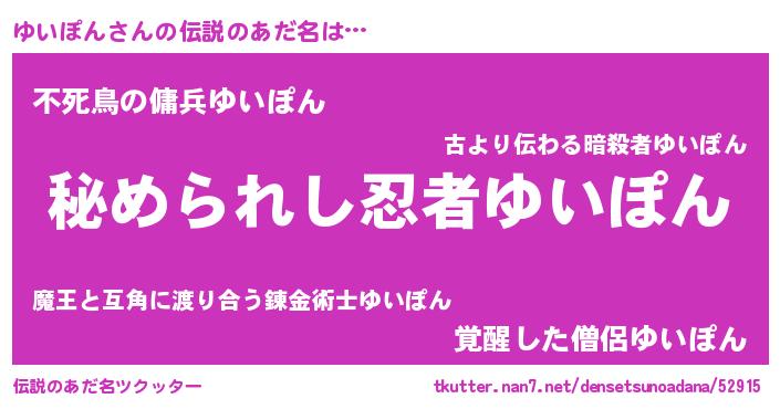 | ファンタジー風あだ名 | 『エターナルユイポンー』『ユイフェル』 |