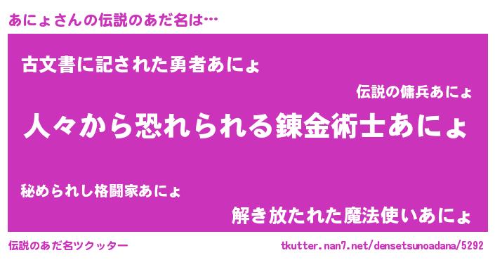 | ヒーロー風カッコイイあだ名 | 『正義の使者あにょ』『ネオアニョ』 |