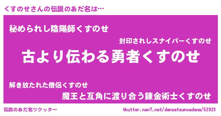 | 意味不明あだ名 | 『永久保存くすのせ』『ペロリンくすのせ』 |